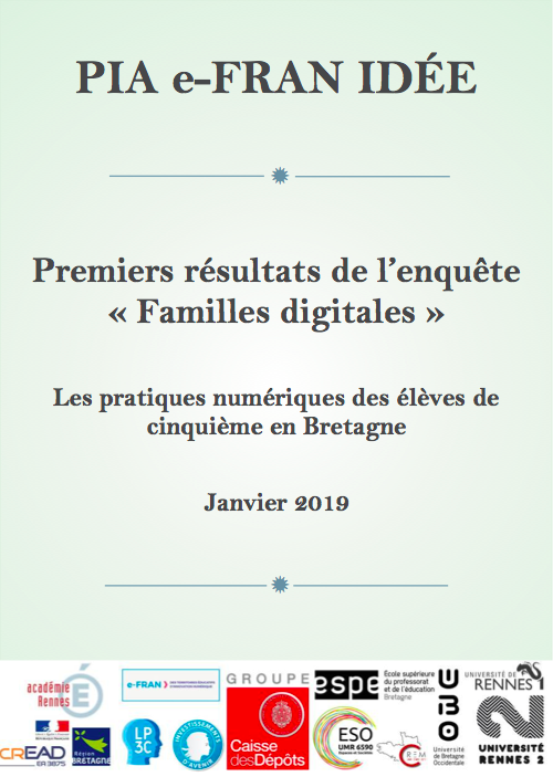 En janvier/février 2018, une équipe de chercheur·e·s des universités Rennes 2, Rennes 1 et de l’ESPE de Bretagne a fait passer un questionnaire auprès de l’ensemble des classes de 5ème de 16 collèges bretons afin de mieux appréhender leurs activités, notamment numériques, en dehors du temps scolaire. Ce dossier constitue une première restitution des résultats de cette enquête qui a été passée auprès de près de 1700 élèves de 5ème d’Ille-et-Vilaine et du Finistère. Il a été élaboré en direction des collèges ayant participé à l’enquête et a vocation à être lu et discuté par tous les acteurs du monde de l’éducation intéréssés (personnels des établissements scolaires, élèves, parents, etc.).